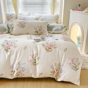 Spring Flower Down Duvet Cover 100% Cotton Bedding Flower Duvet Cover with Zipper 3 Wildflower Clothes and Hats