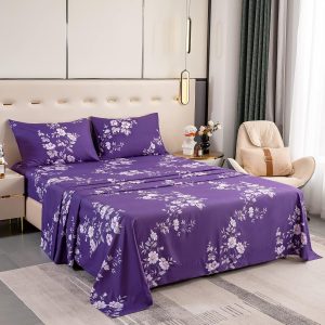 Queen Sheet Set Ultra Soft Breathable Silky Flower Bed Sheets Deep Pocket 100% Microfiber Bedding Sheets 4 Piece Queen Size Dark Purple Floral
